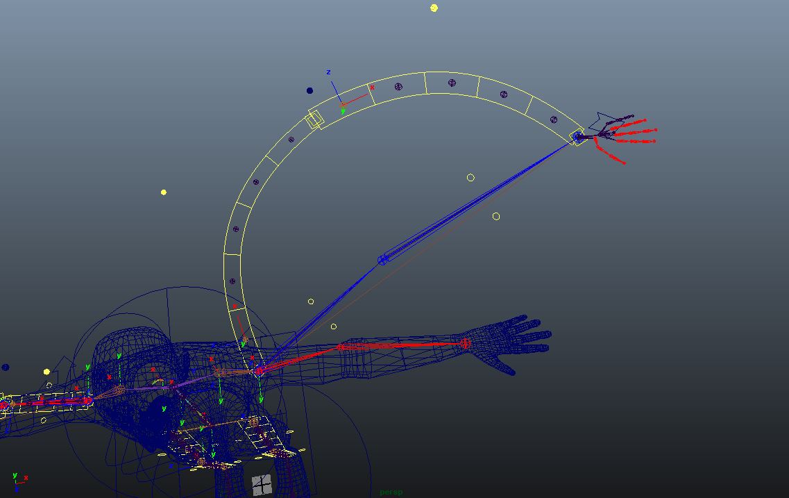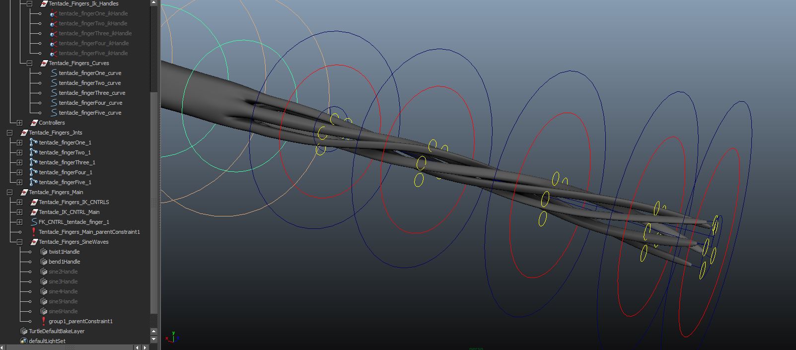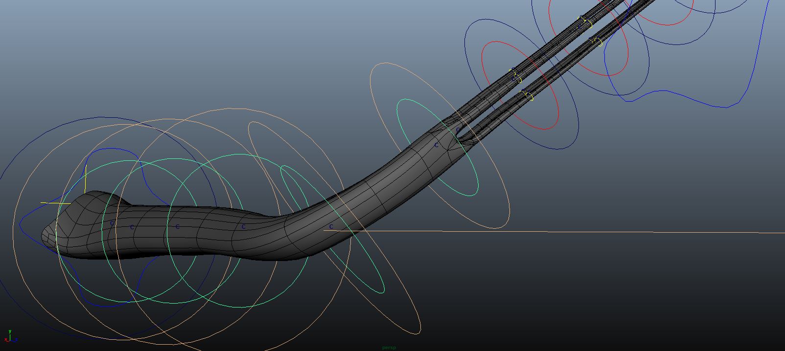 In addition to working on the clothing I prepared myself for rigging the shoggoth. I broke down and remade an example of a tentacle rig that was made by Evan Boucher.