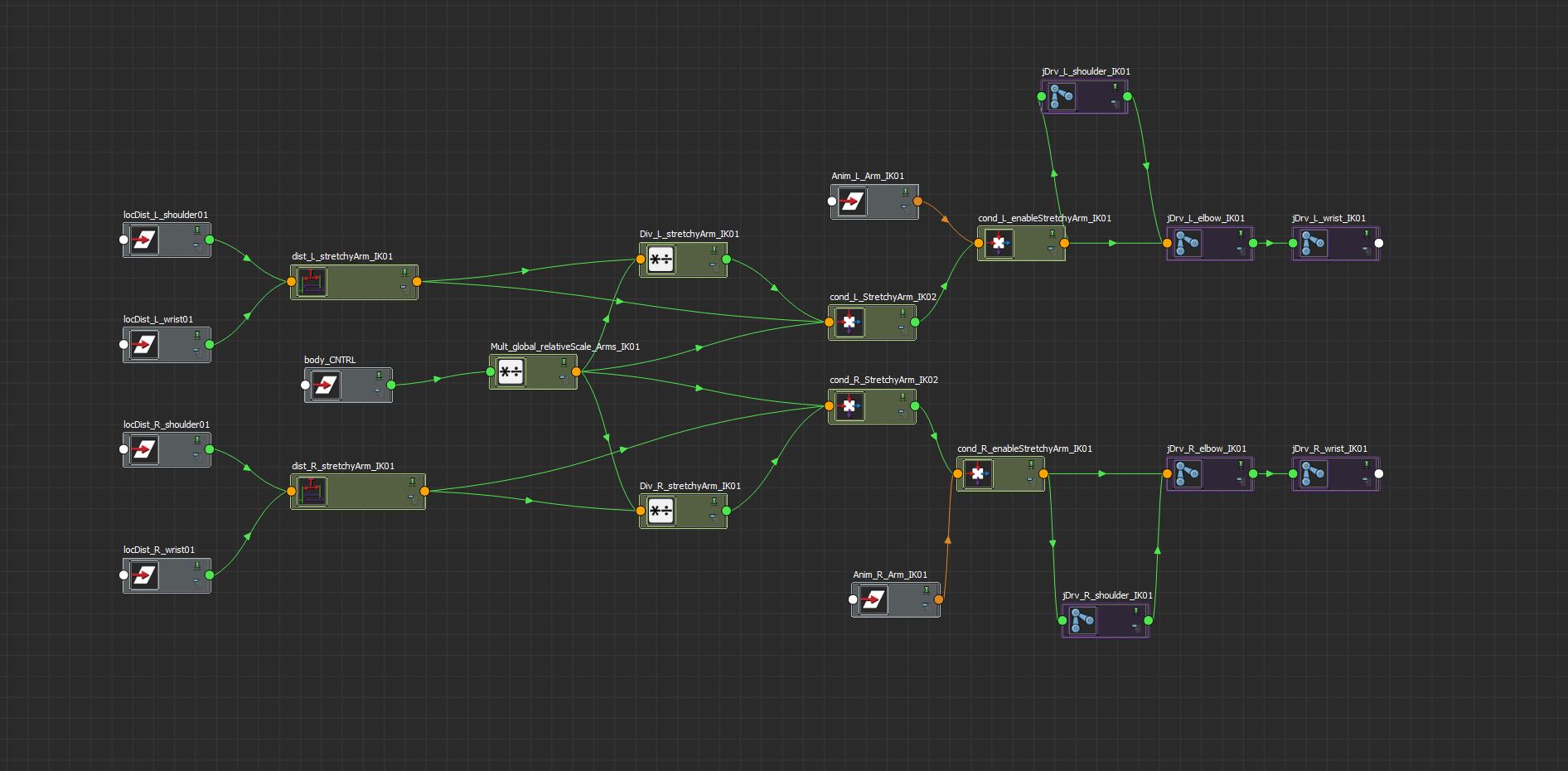 For this week i finished the main base rigs for both of the characters. I added an ik fk switch to the the arms. I added a clavicle controls. I added in the ribbon rigs for the forearms and the shoulders, including twist. I added a stretch controller for the elbow.