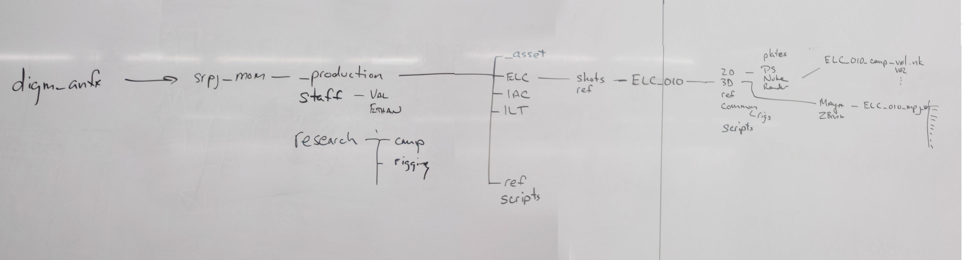 In addition to Trello stuff, I also worked on researching asset management techniques. This will be a major topic to cover at this Wednesday’s weekly, since Animation will be beginning this week and layout is dependant on a solid file hierarchy. On one hand, having a large project will guarantee that every scene is referencing the same files, without needing to duplicate updates into separate sub-projects or break the local references by linking outside a project. I want to minimize the chances of human error, and this seems like the best way to ensure that everything is always consistent.